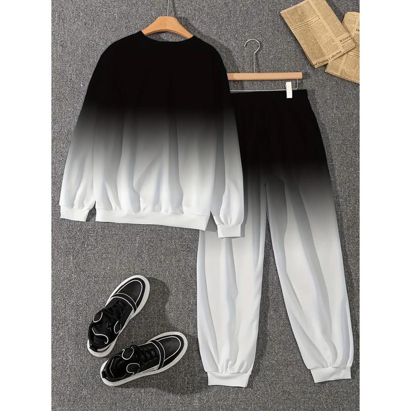 Two-piece men’s casual sports set: long sleeve printed T-shirt + matching pants