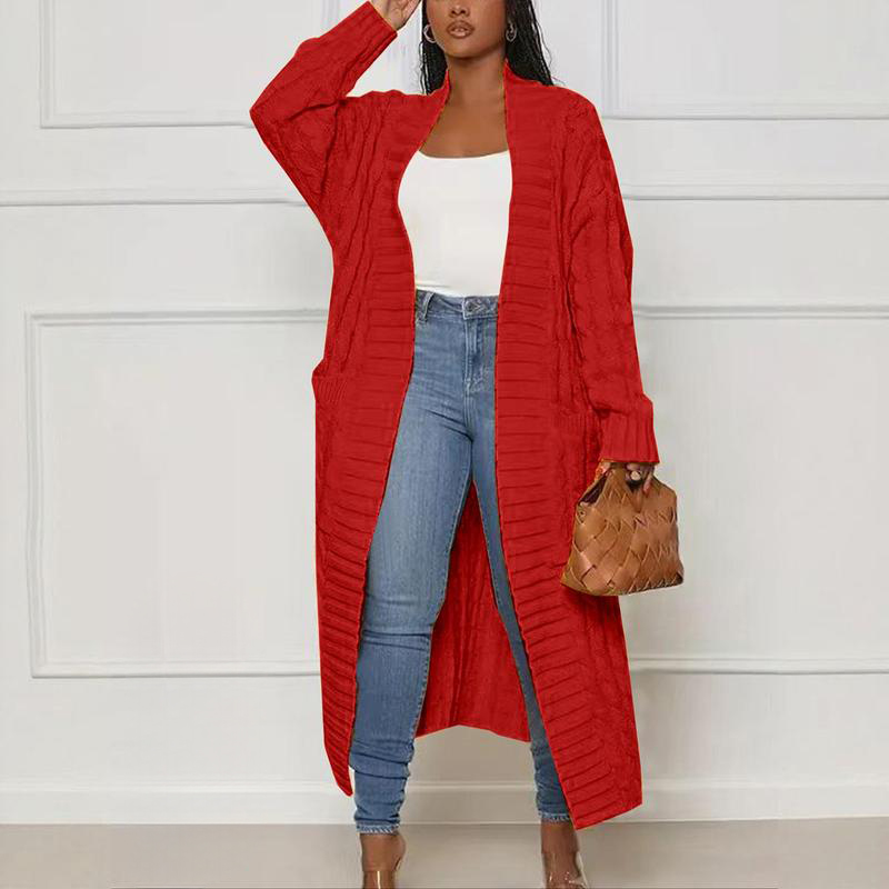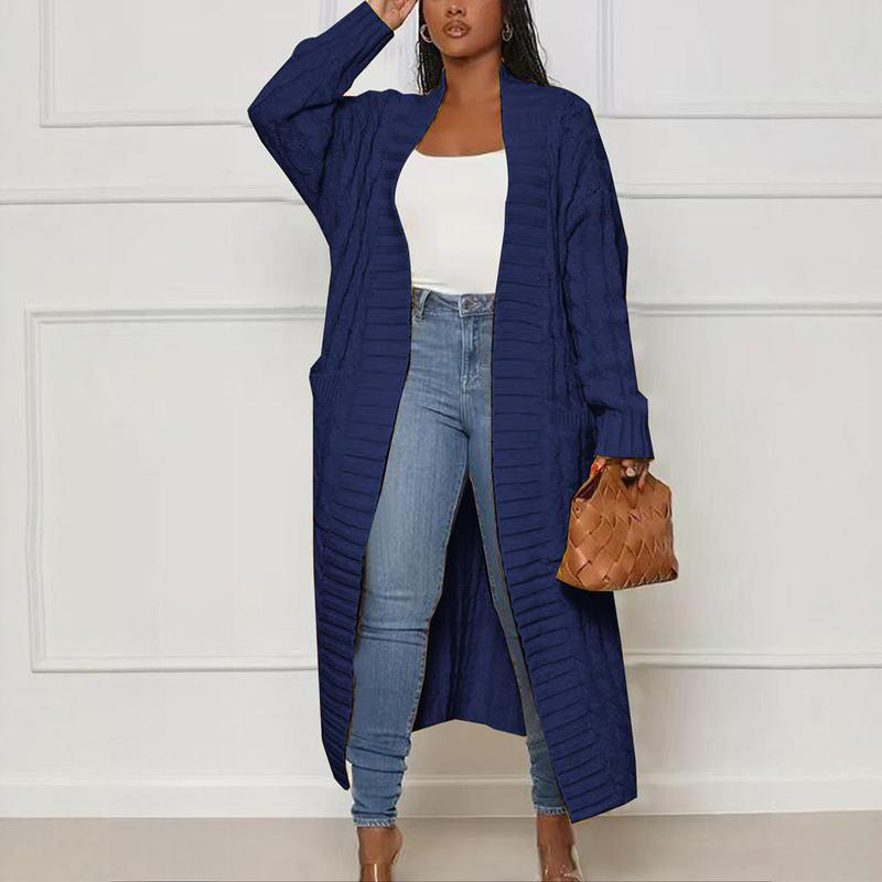 Women's Solid Color Textured Drop Shoulder Pocket Longline CardiganElevate your wardrobe with this casual open front long sleeve knitwear. Perfect for fall and winter, it's ideal for daily wear. The baggy design offers comfort and style. Pair it with jeans or leggings for a chic look. This women's knit clothing piece is versatile and easy to integrate into your collection.
