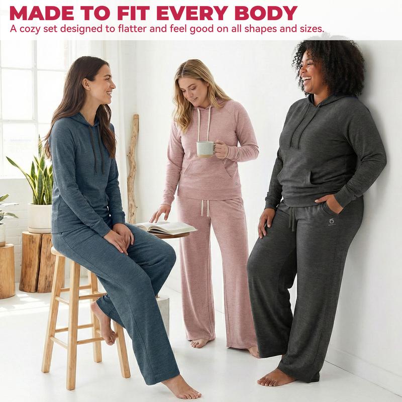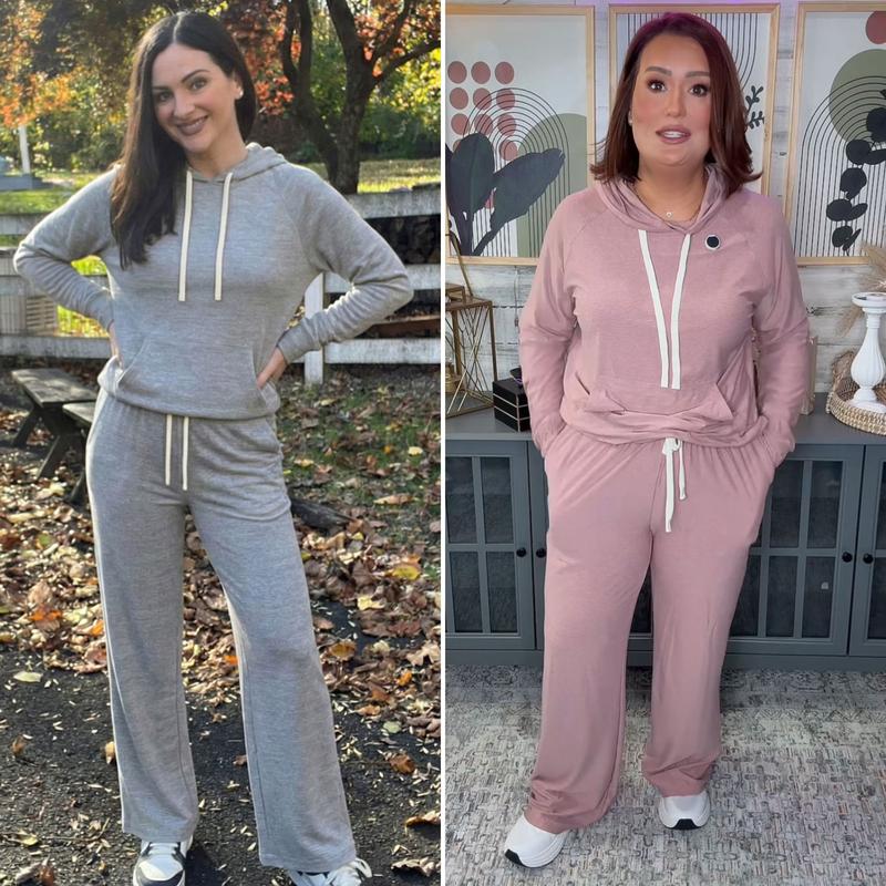 Two-Piece Comfort: Comes with a relaxed long-sleeve hoodie and matching wide-leg sweatpants.